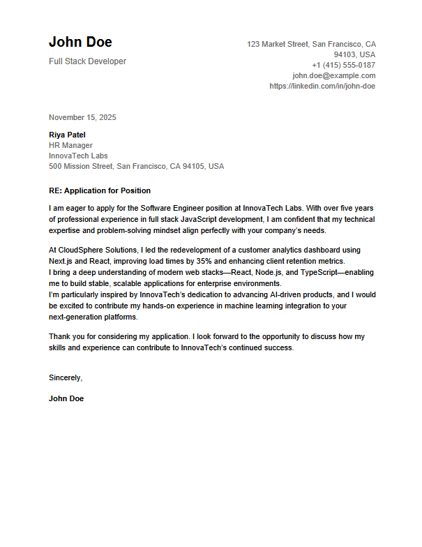 Free Cover Letter Builder – ATS‑Friendly Templates, No Sign Up